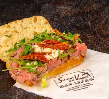 Rosbief, franse geitenkaas, honing, rucola & tomaat